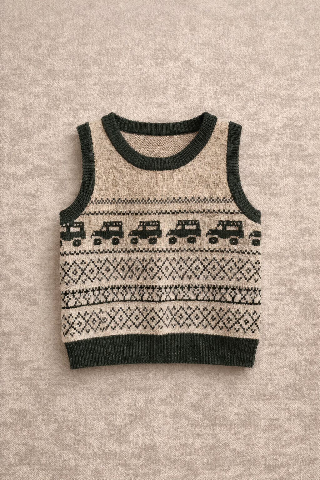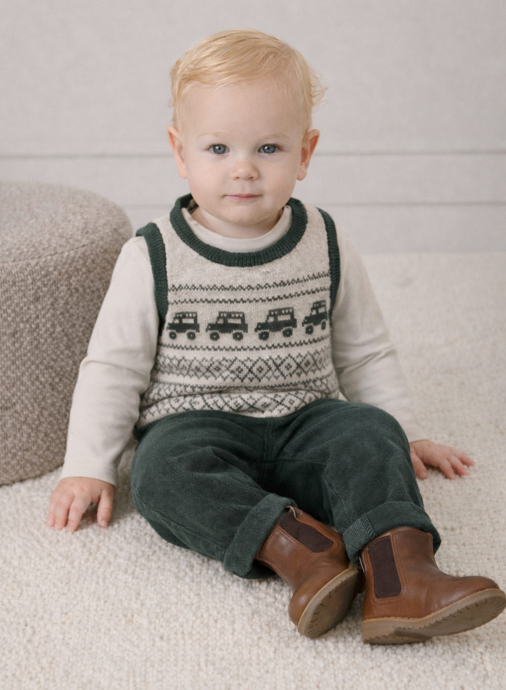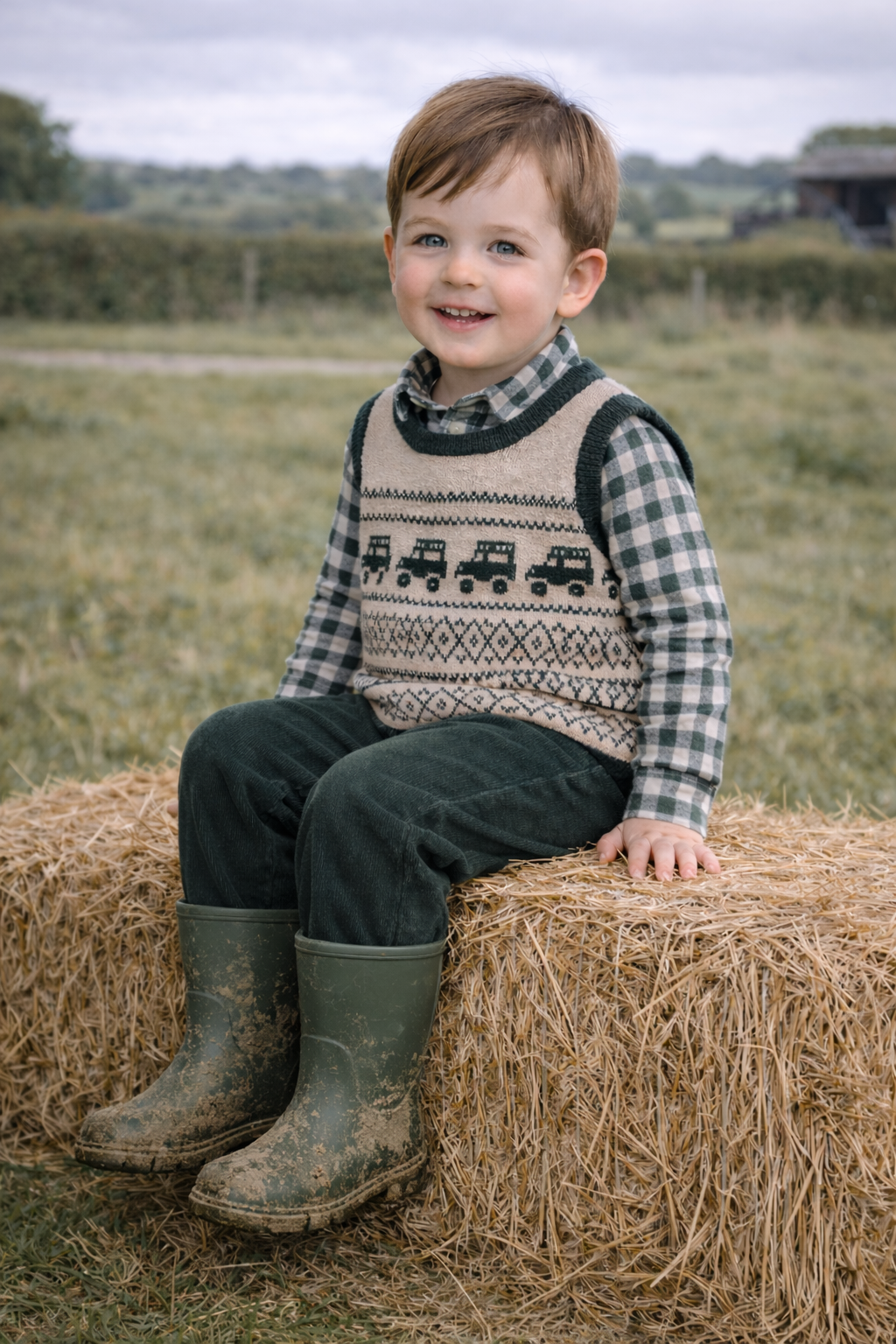 Crafted for little explorers raised among rolling fields, muddy boots and farm tracks, the Land Rover Tank Top is a refined essential for countryside living. Designed with heritage in mind, it features a classic Fair Isle pattern with iconic Land Rover motifs, celebrating a love of rural life from an early age.